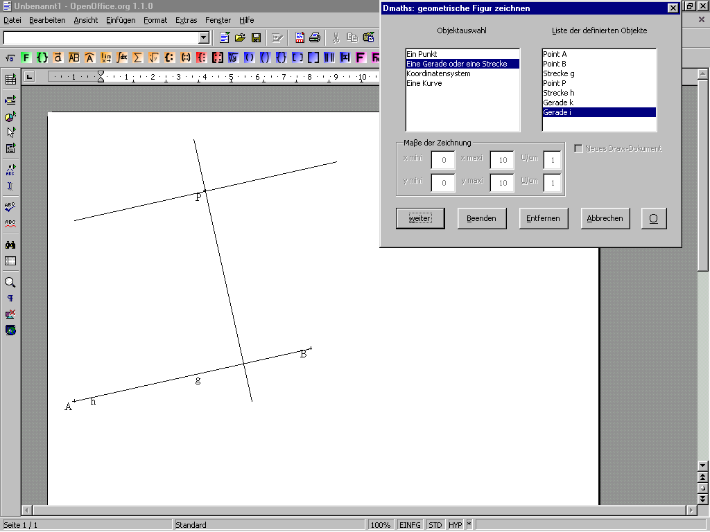 Taschenrechner, DMaths, DMaths-Plotter, DMaths-Konstruktion, Symbole Debian GNU/Linux